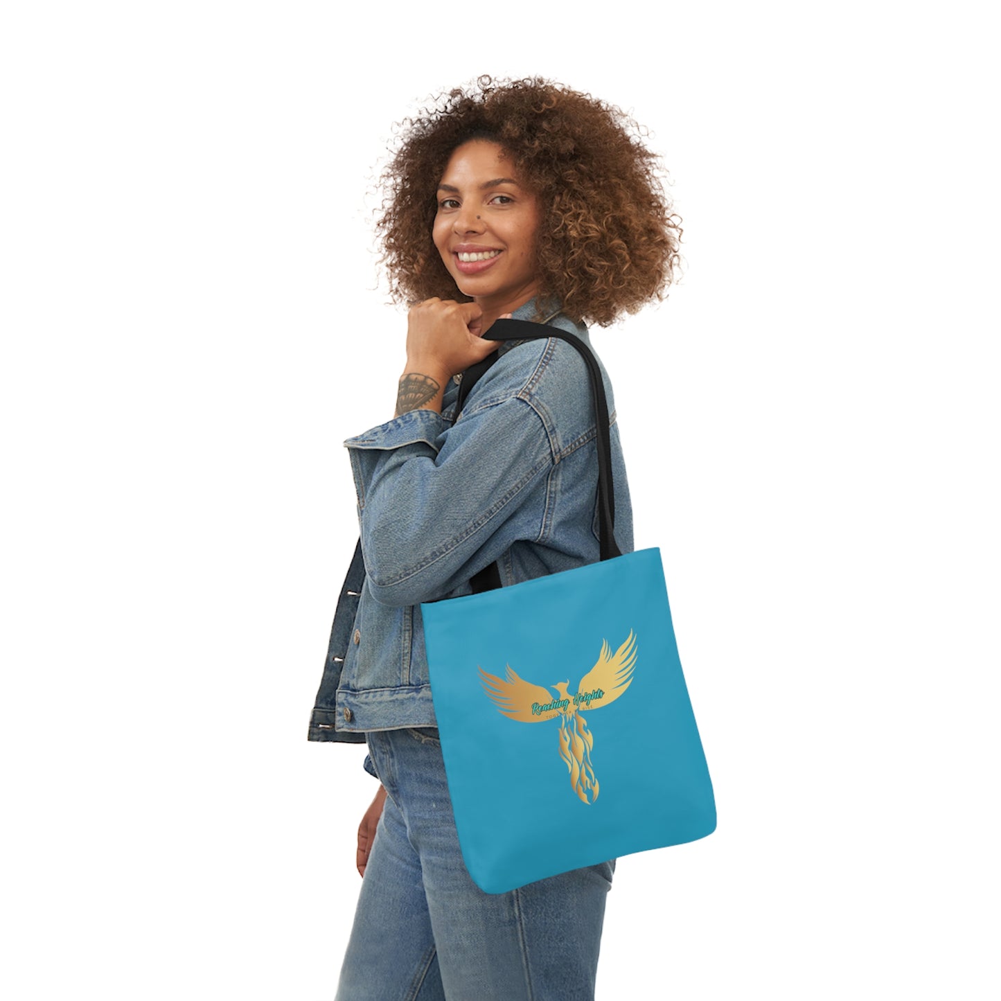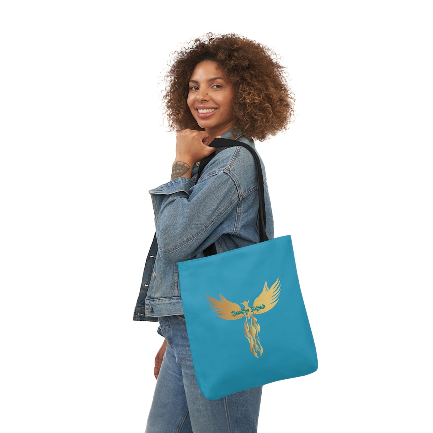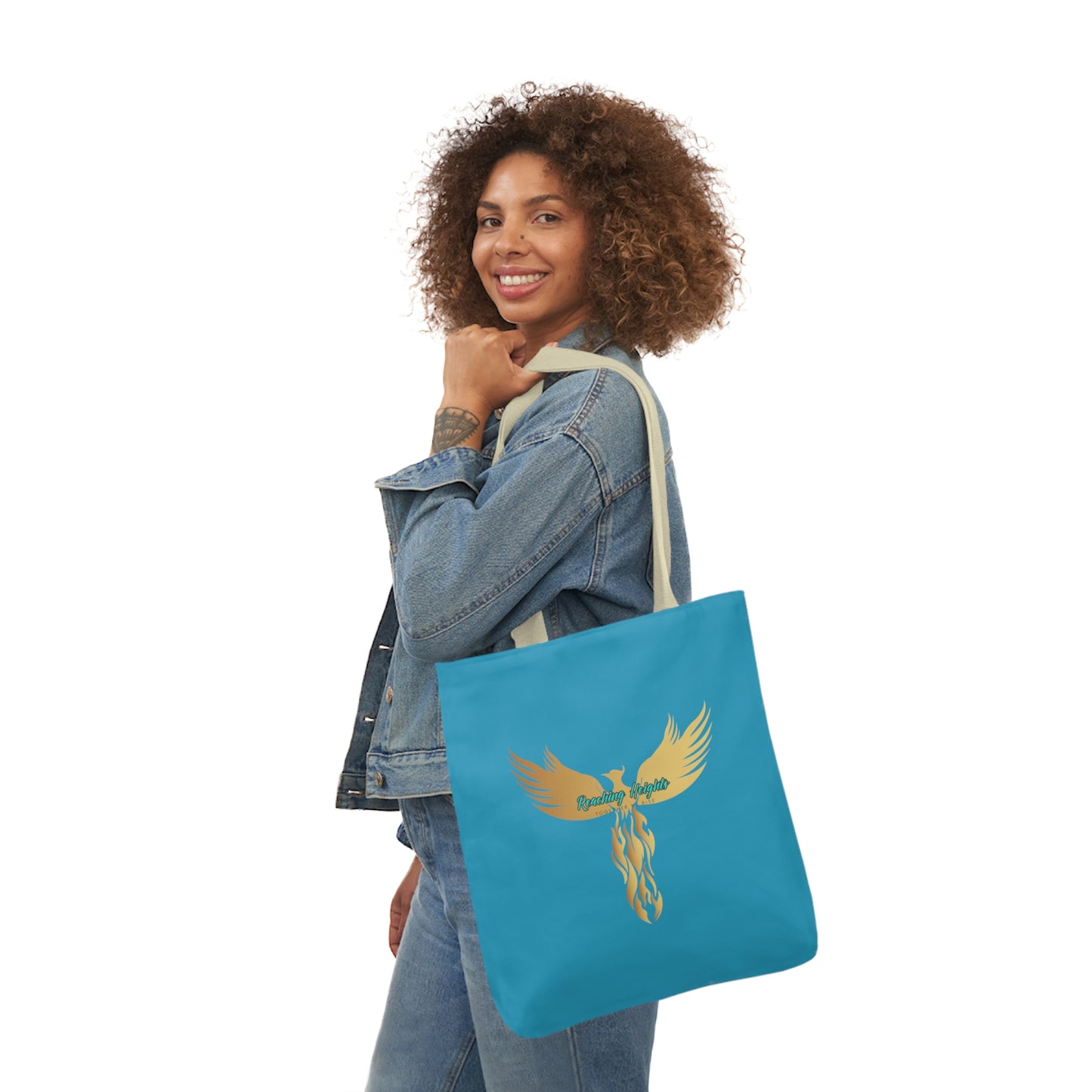 Turquoise: RH Logo: White Font: Phoenix Rise: Canvas Tote Bag, 5-Color Straps